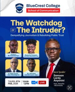 In an era where journalists increasingly face hostility, mistrust, and even physical attacks, the BlueCrest College School of Communication organized a timely and thought-provoking webinar titled “The Watchdog or the Intruder? Demystifying Journalism & Rebuilding Public Trust.” The virtual event brought together seasoned media professionals and academics to interrogate the role of journalism in modern society and address the growing tension between journalists and the public.