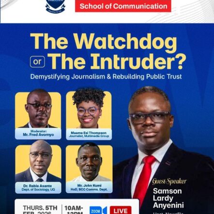 The webinar, moderated by Mr. Fred Avornyo, featured insightful contributions from Maame Esi Thompson (Journalist, Multimedia Group), Dr. Rabiu Asante (Department of Sociology, University of Ghana), Mr. John Kumi (Head of Department, BCC Communications), and Samson Lardy Anyenini (Host, Newsfile – Multimedia), who served as the guest speaker.